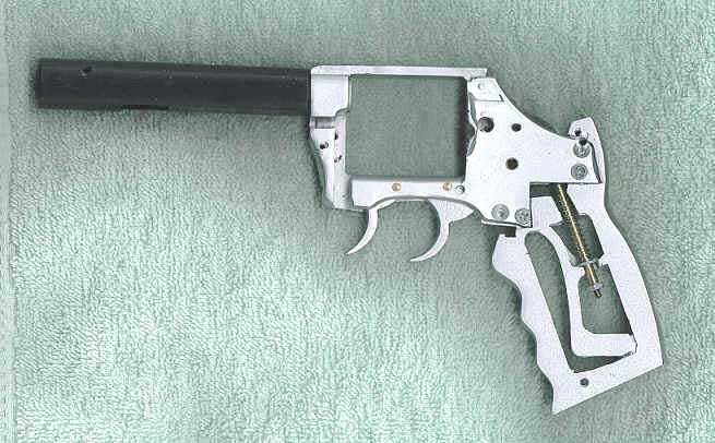 slot at the top for rotational travel control. The tiny tip-like projection of the Steyr receiver end cap is then glued into place, followed by insertion and gluing of the cap itself to plug the opening of the receiver above the Bulldog barrel. Table Of Contents
