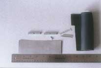 - Heiland flash clamp -or- - materials to scratchbuild your own clamp The clamp was used to affix the flash to the side of a press camera. In this case, it will be used to hold the calculator "bubble" display or circuit board and is affixed to the center of the flash. I've seen replicas built using the stock Heiland clamp, but this clamp is about 3/4" shorter than what was used in the movies. The problem is that if you decide to use the calculator bubble piece, you'll find that only 3 or so bubbles fit into the clamp, which doesn't look right. I've chosen to scratchbuild my own clamp. If you have access to a drill press and some basic tools, this shouldn't be too difficult. If you don't, you can either use the Heiland flash clamp, or buy a machined clamp that others have made. Be prepared to pay $40 for a machined clamp if you can't build your own. You can buy one from EDC Studios at http://members.aol.com/edcarmory. - black vinyl cloth This is wrapped around the flash clamp (whether custom made or stock). The clamp part is left exposed, with only the band that wraps around the flash being covered. - calculator display bubble a 1970s LED calculator -or- - connector edge from a computer card that fits into a 44-connector bus. The display piece out of a 70s LED calculator was used in the first Star Wars movie. It is simply a 1/2"x 2" piece of plastic with 8-11 bubbles on them. These magnified the numbers of the older LED calculators so they could be read. This piece was used as the "activator switch" and was slid into the clamp that was affixed to the center of the flash. You can often find LED calculators at resale shops and flea markets. Unfortunately, will need to destroy the calculator to get the plastic bubble piece out. If you can, find a cheap Texas Instruments model, as these bubbles are easier to work with than some others. Stay away from HP calculators. The bubble display has raised edges on the top and back of the display piece making it too thick to slide into the clamp without heavy modification. You should be able to get an appropriate calculator for around $5-10. - 1 or 2 tubes of plumber's epoxy putty for the 6 hand grips The original lightsabers (both Luke's and Darth Vader's) used windshield wipers from a British vehicle for the 6 handle grips affixed around the bottom of the flash. In "The Empire Strikes Back" and "Return of the Jedi", the windshield wipers were replaced with cast grips. The correct windshield wipers are difficult, if not impossible to come by, so I chose to use plumber's epoxy putty to cast my own grips. In the first movie, the windshield wipers tended to fall off of the flash because the handle is rounded, but the backs of the wipers were flat. For the later movies, the wipers were replaced by grips cast in resin. The backs of the grips were rounded so they would stick to the flash handle more securely. The kind of putty you need to use comes in clear plastic tubes with caps on both ends. The putty comes in a roll, with two colors. The center is one color and the outside is a different color. You mash the putty until the putty turns one uniform color. This stuff starts to cure in 5 minutes and is rock hard within 15-20 minutes. Oatey's is a popular brand, but there are several others that will work just as well. The putty will cost you about $8 for enough to do 6 grips. You can find plumbers putty at most hardware stores and home improvement centers such as HQ, Home Depot, or Builder's Square. If you really must have rubber grips, EDC Studios makes a set of extruded rubber grips that can be used for handle grips. These will cost you about $20 for a set of 6. - a roll of double-sided tape This is used to affix the vinyl cloth to the flash clamp and to affix the handle grips to the flash. 3M VHB (very high bond) is the best tape to use, but it costs $50 a roll and can only be purchased through industrial catalogs. The standard double-sided tape found at the local hardware store will work as long as you've shaped the back of the handle grips to fit the flash. The tape will cost you about $2-3, which will be enough for plenty of grips. - 2 sheets of basswood (3/16" thick and 3/32" thick) for mold If you choose to make your own grips, you will need to build a mold from basswood. This can be found at most hobby and craft stores in a large display box which contains assorted thicknesses of wood. Be sure you get basswood and not balsa. Balsa will work, but the mold will not hold up to more than 3 castings. If you mess up a casting and need to do more, your mold will be done before you are. Basswood will hold up for several castings as long as you wax the mold. In addition to basswood, you will need a solid, smooth piece of plywood. I found a 12" circular piece at the hardware store for about $7. The basswood cost me about $4. - D-ring used for hanging pictures for hanging the saber from your belt The D-ring you need can be found at a hardware store. You need one designed to be bolted to a picture frame. They usually come in packs of 2-4 and shouldn't cost more than $2. If you decide to scratchbuild a flash clamp, you'll need: - 1/4" zinc-plated steel bar You will find this in the industrial section of your local hardware store. Often, there will be a display of several lengths and thicknesses of metal bars, rods, and u-channels. The one I used is 1 foot in length. You will need to cut two 2" lengths from it with a hacksaw. One of the lengths will have a 8/32" hole drilled through the center of it. The other will be tapped with a 6/32" tap so that it can accept a machine screw. The bar will cost about $1.50. If you don't want to hacksaw it yourself, you might be able to con the person at the hardware store to do it for you. - package of thin K&S aluminum sheet (.02 or thinner) Hobby shops and some hardware stores stock K&S aluminum sheet. Look for a display stand with lots of small metal rods, squares, and sheets. Make sure you get sheet that is thin enough to 