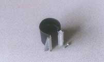of the mold you need to build. ( Fig. 13 - Mold schematic for handle grips) Use the template above as a guide to gluing the basswood to the plywood base. Be sure that you make basswood strips at least 4" long to accommodate a 3" grip. The extra inch gives you a little margin for error. Cut the 3/16" basswood sheet into two pieces that are 4" long. It doesn't really matter how wide you cut them. To get the angle on the edge you will need to lightly sand the edge. Using wood glue, affix the 3/16" sheets onto the base, making sure they are placed correctly (1/16" apart from each other). This will result in a 4" long V-shaped channel. Next you need to cut the 3/32" basswood into two more pieces, also 4" long. Make sure they aren't wider than your 3/16" sheets that have already been glued to the base. Glue the 3/32" sheets onto the 3/16" basswood sheets, making sure the placement is correct. Let the mold dry for an hour before you try to cast your grips. Once the mold is dry, you need to wax and buff it using car paste wax. You should put at least 3 coats of wax on the mold. You might try using a Q-tip to get into the crevices. You don't want the putty to stick to the mold since this will not only ruin the grip, but your mold as well. Once the mold has been sufficiently waxed, you need to spray the 1/4" PVC pipe with Pam or some other non-stick spray. This makes an excellent mold release. Set the pipe aside.