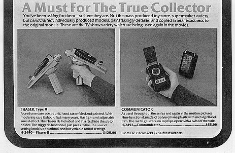 I remained freelance and found that Lincoln Enterprises was still in business. Lincoln Enterprises was the sovereign company Gene Roddenberry and his wife Majel Barrett formed during the run of the original Star Trek to sell fan-related items of ST, way back in 1968. I pitched to Mrs. Majel Roddenberry to sell fans Phasers and Communicators. Eventually we agreed on terms and for the next few years I made props for Lincoln Enterprises. I had again rejoined Star Trek.