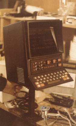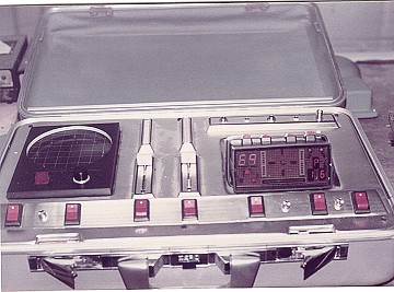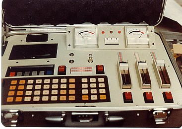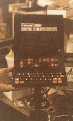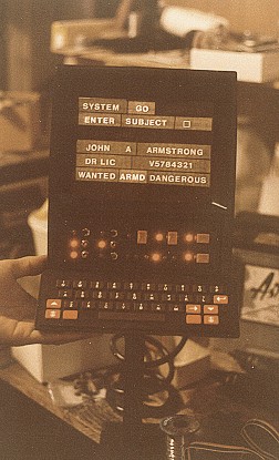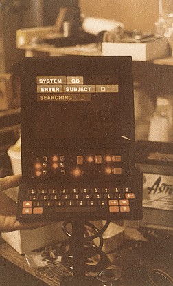 them... I did a freelance job on Ice Pirates and subcontracted to Ellis Mercantile, still another prop rental shop. I worked with Chris Gilman. For more see the Ice Pirates gallery page. Meanwhile, to supplement things, I was beginning to make media prop reproductions. I found many reasons to do these; much as artists are taught to copy the old masters to learn their style, I needed to solve the same problems that the prop makers had to solve when they made these props. Doing this learning allowed me to work full time at my craft, to expand my abilities, and pay the bills between film work. I would not be the prop maker I am today if I had not taken that path. Building for retail customers was much more demanding than film work. In film work, speed was more important than doing a pretty job. After Ice Pirates I got one last call from the old Hand Prop Room to build a police car computer for them one that would allow controlled reactions but be much cheaper than a real computer. So I rigged up a mock computer with a few real controls. An actor could pound all day on the key board, and nothing would happen, but flip the right switch, and it would spring into action. Scene: Policeman flips the computer on, it would light up and run a couple of lighted panels on the TV screen, like: "System go: Enter Subject" and the cursor would sit there and blink, (like a real computer did back then...) he would then make like he is typing a bunch of information in...and when done flip the second switch.... a new panel would light and blink, like :"Searching" then after a minute it would light the remaining panels like it was printing out the answers. Here it is: