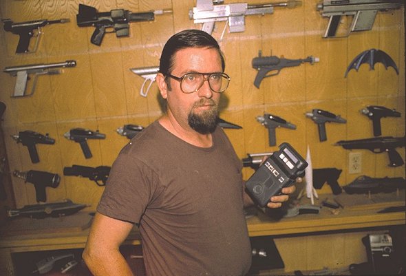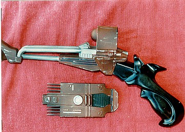 TV work to keep a crew busy. But these were very hard times, we got built up and seemed to be making it. I was working with a small crew of three and four guys, when we did the 1984 Worldcon in LA. Well that was just too much, when we got home I found that we were more or less broke, there was little money left over, and this caused a major breakup. I had to move out of Culver City to Tujunga and then Jackie and I fought, and I was just about fed up with the whole thing and called a friend back in Phoenix and got a job offer running his automotive junk yard, so I moved back to Phoenix once again, alone, Jackie and I separated. But once I was rested I ended up still making props, as I was really not in love with the wrecking yard...so I got some urging from a few friends and especially Mr. Scott Brodeen, who promised use of his garage, and that I could park my little travel trailer I had bought to live in the junk yard in his yard for a couple of weeks if I came back and got a film job, and as there was another Star Trek job upcoming, that with with his support I should go for it. So I returned yet again to California with a nearly grown 16 year old son Robert, to Scott's then home in Riverside, where we (Robert and I) designed a new style Phaser for the upcoming new Star Trek film: