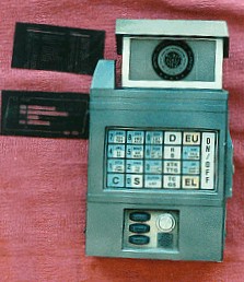 attempt to get work on it. I designed a new Tricorder, combining the features of the classic and the movie types. I added special features such as a backlight screen that would allow fast changing of a transparency for live, in the camera, shots of the readouts, motor powered pop-up head, and adjustable blinking LEDs.