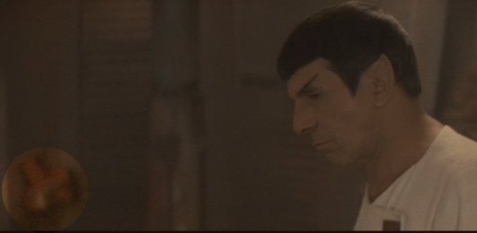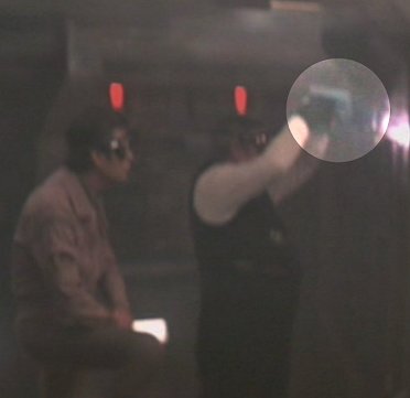 Klingon Flashlight ![]() Hidden in the background in an alcove of the Bird of Prey bridge is a Klingon flashlight. The initial purpose for this prop was to be a waterproof flashlight that Kirk would use to find the hatch to release the whales. The idea was scrapped, but of course it was still there in background.