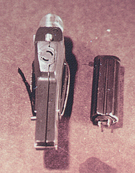 For now, allow me to describe these new handles, which were the same as the black and white models other than color. These handles were basically a flattened oval in shape, round ends with a flat center section. The flat center section had two side plates side by side the length of the handle, stopping just about 3/8″ short of the bottom. On the working hero models, this end 3/8s were where the end cap was and it was removable to change the batteries.