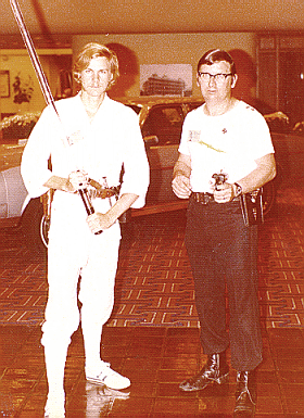Saturday night, after another full day of function rooms much like Friday, we would have the costume contest where there are no skits, sketches or acting allowed, it’s just about costumes, again with something like a $200.00 cash prize and so on, to encourage all participants into their very best efforts. One group recreated the “Star Wars” cast, with a great home-made brass C3P0, a radio-controlled R2D2 which was so real if I didn’t know the builder I would’ve assumed Lucas had loaned them one of the film models, a seven foot tall Chewbacca, a full dress Han Solo, Luke in the tan costume, Princess Lea in her Dantooine winter costume. These costume parties themselves could last up to three or four hours. And again, after the show, we had the run of the hotel all night, parties again all night.